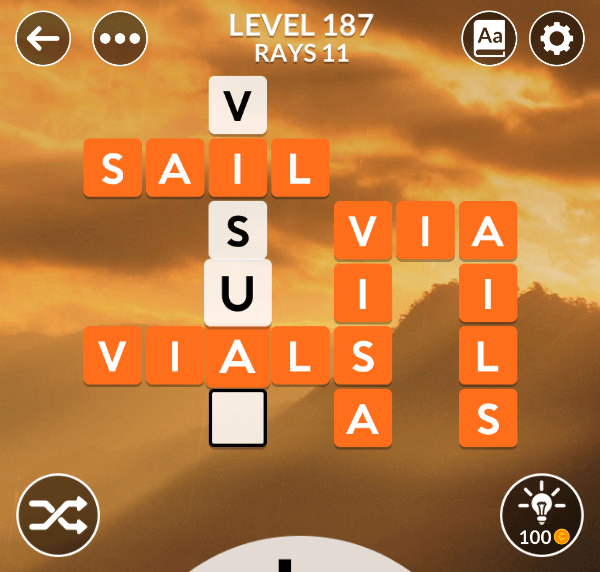 The Wordscapes level 187 is a part of the set Sky and comes in position 11 of Rays pack. Players who will solve it will recieve 14 brilliance additional points which help you imporve your rankings in leaderboard.