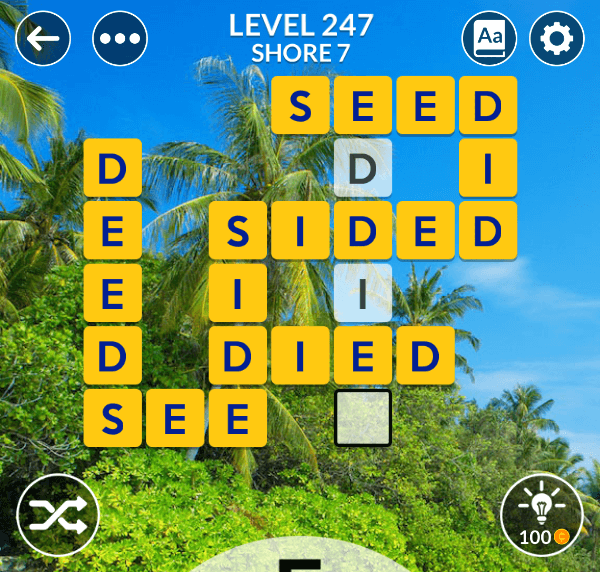 The Wordscapes level 247 is a part of the set Tropic and comes in position 7 of Shore pack. Players who will solve it will recieve 22 brilliance additional points which help you imporve your rankings in leaderboard.