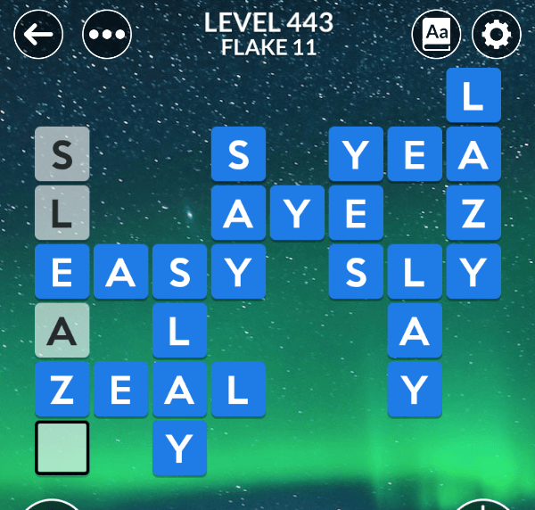The Wordscapes level 443 is a part of the set Winter and comes in position 11 of Flake pack. Players who will solve it will recieve 38 brilliance additional points which help you imporve your rankings in leaderboard.