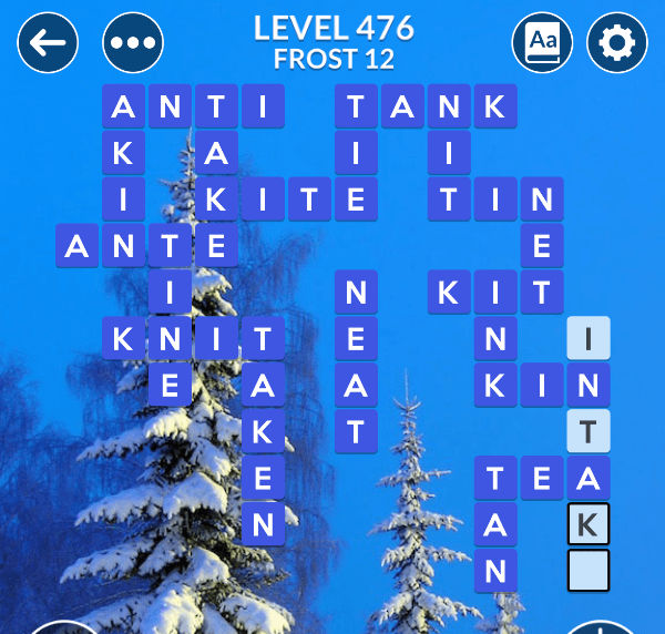 The Wordscapes level 476 is a part of the set Winter and comes in position 12 of Frost pack. Players who will solve it will recieve 74 brilliance additional points which help you imporve your rankings in leaderboard.