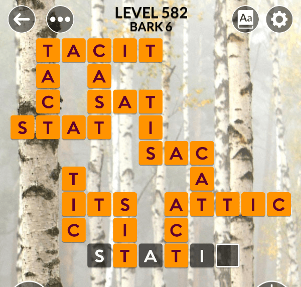 The Wordscapes level 582 is a part of the set Autumn and comes in position 6 of Bark pack. Players who will solve it will recieve 50 brilliance additional points which help you imporve your rankings in leaderboard.