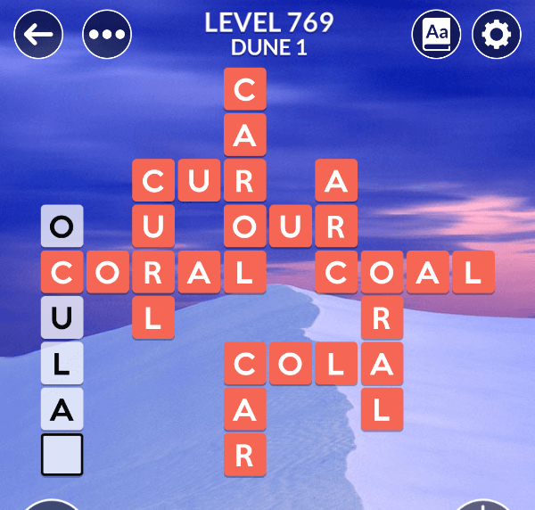 The Wordscapes level 769 is a part of the set Desert and comes in position 1 of Dune pack. Players who will solve it will recieve 38 brilliance additional points which help you imporve your rankings in leaderboard.