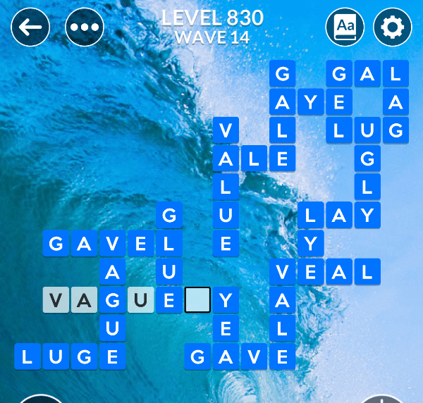 The Wordscapes level 830 is a part of the set Ocean and comes in position 14 of Wave pack. Players who will solve it will recieve 92 brilliance additional points which help you imporve your rankings in leaderboard.