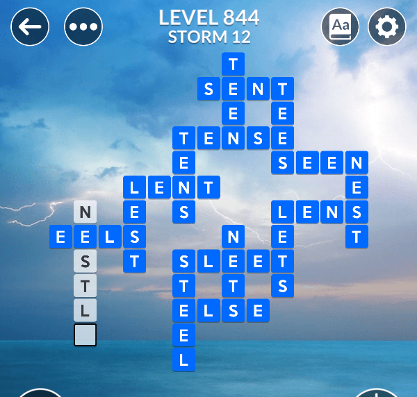 The Wordscapes level 844 is a part of the set Ocean and comes in position 12 of Storm pack. Players who will solve it will recieve 58 brilliance additional points which help you imporve your rankings in leaderboard.
