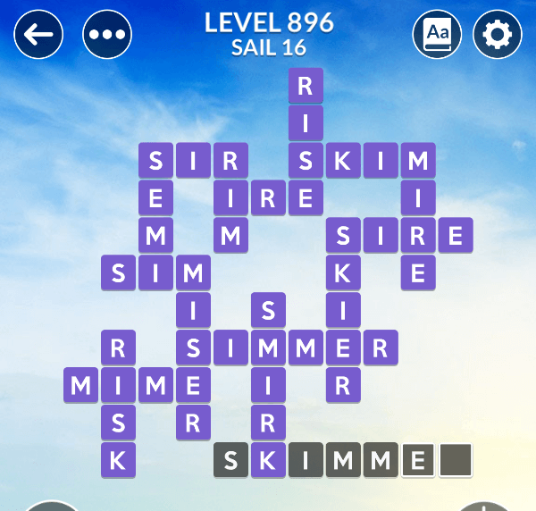 The Wordscapes level 896 is a part of the set Field and comes in position 16 of Sail pack. Players who will solve it will recieve 72 brilliance additional points which help you imporve your rankings in leaderboard.