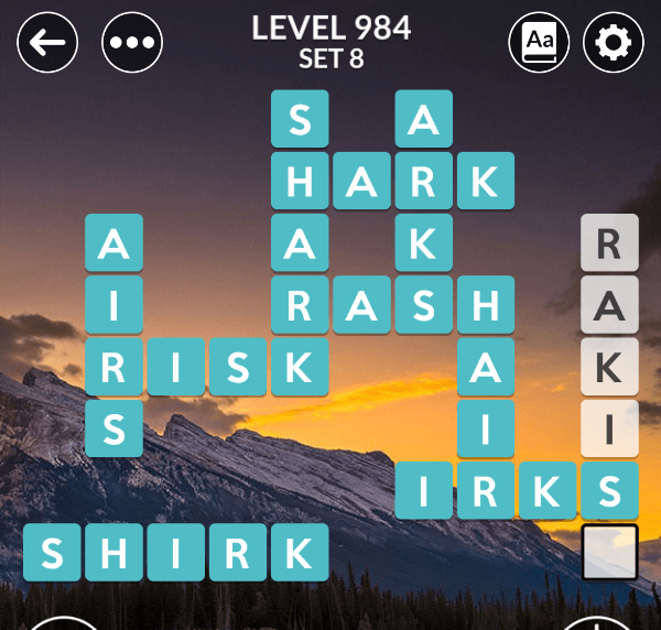 The Wordscapes level 984 is a part of the set Lake and comes in position 8 of Set pack. Players who will solve it will recieve 26 brilliance additional points which help you imporve your rankings in leaderboard.